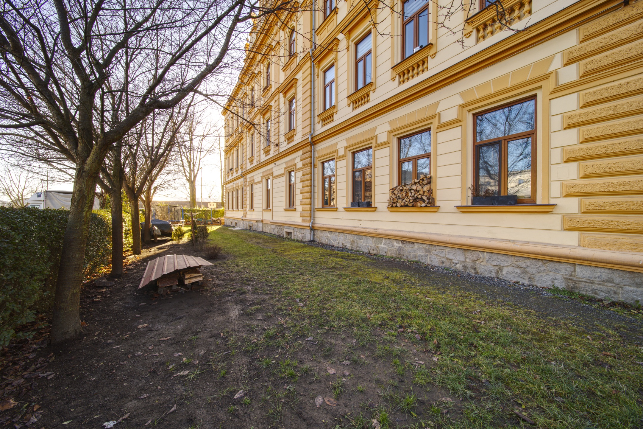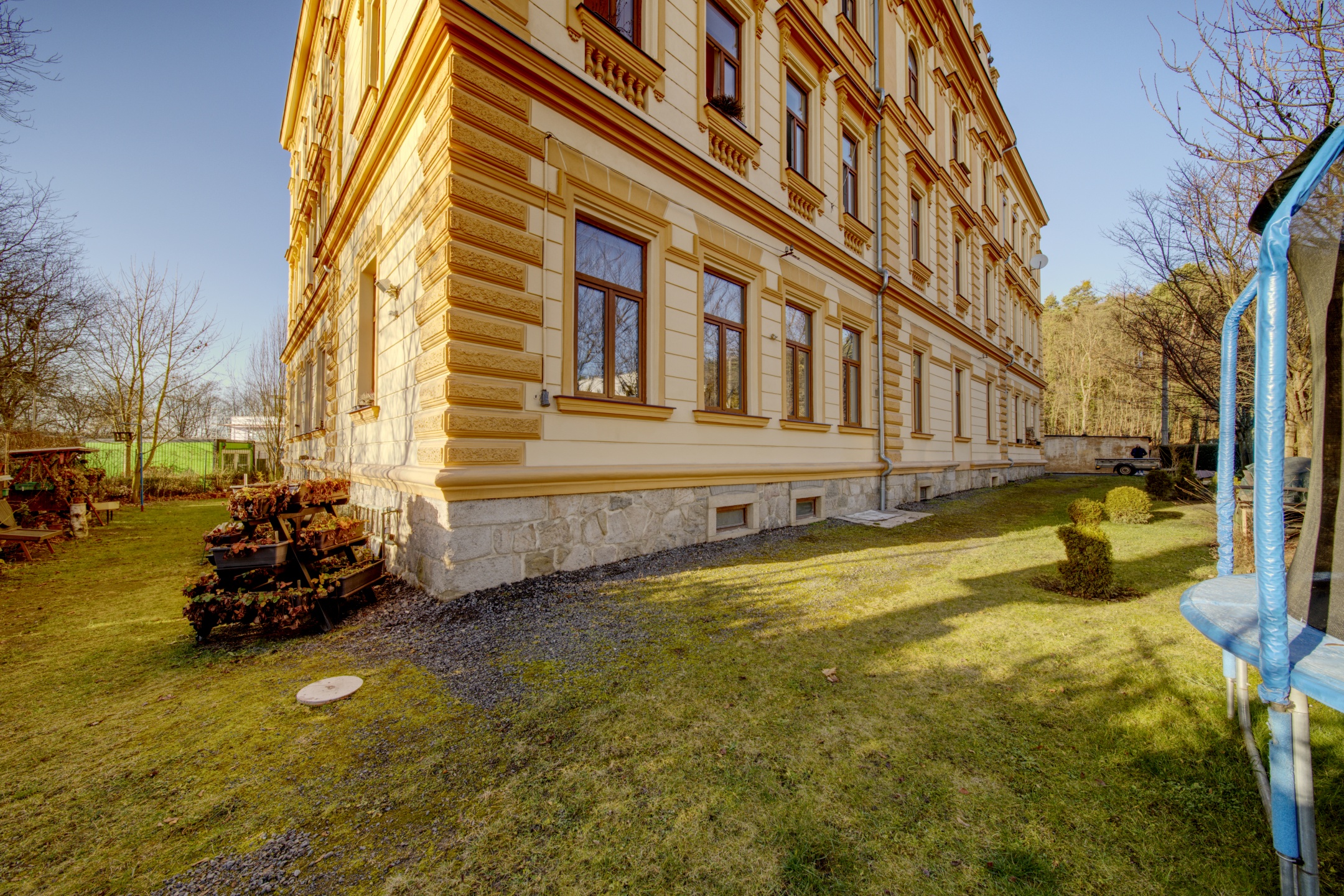 Možnost využívat společné venkovní prostory (posezení, dětské hřiště, trampolína..)
