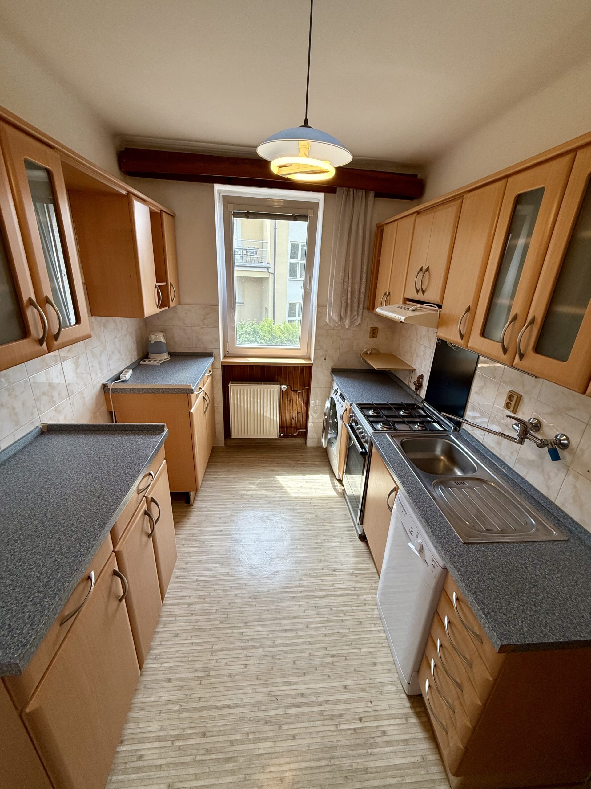 Dům je částečně zařízený, nabízí pěkný standard a prostor pro parkování dalších aut v ulici.