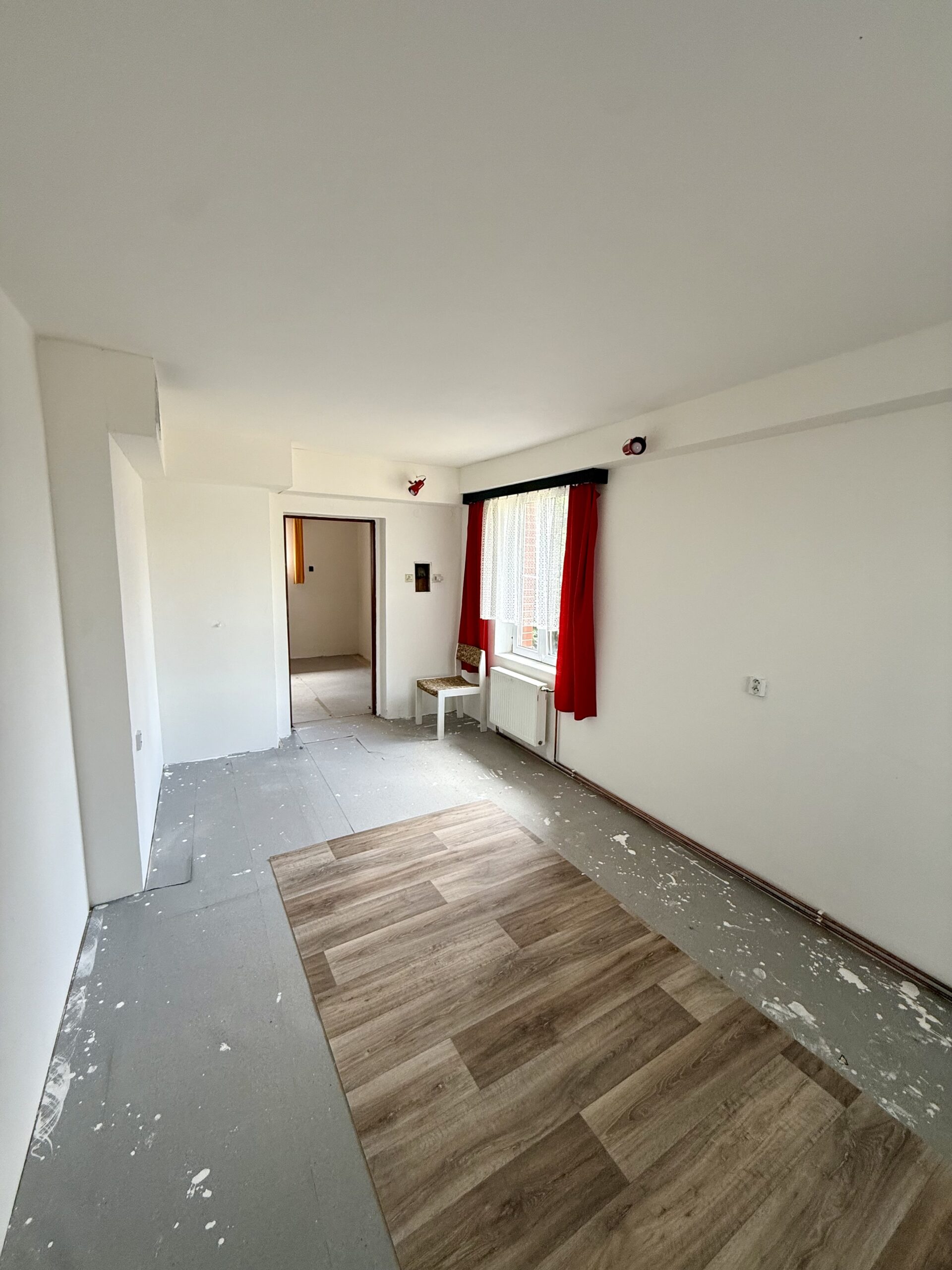 Horní patro domu je po rekonstrukci, včetně zateplení, s dispozicí 4+1, komorou, koupelnou, samostatném WC a vstupem na balkón.